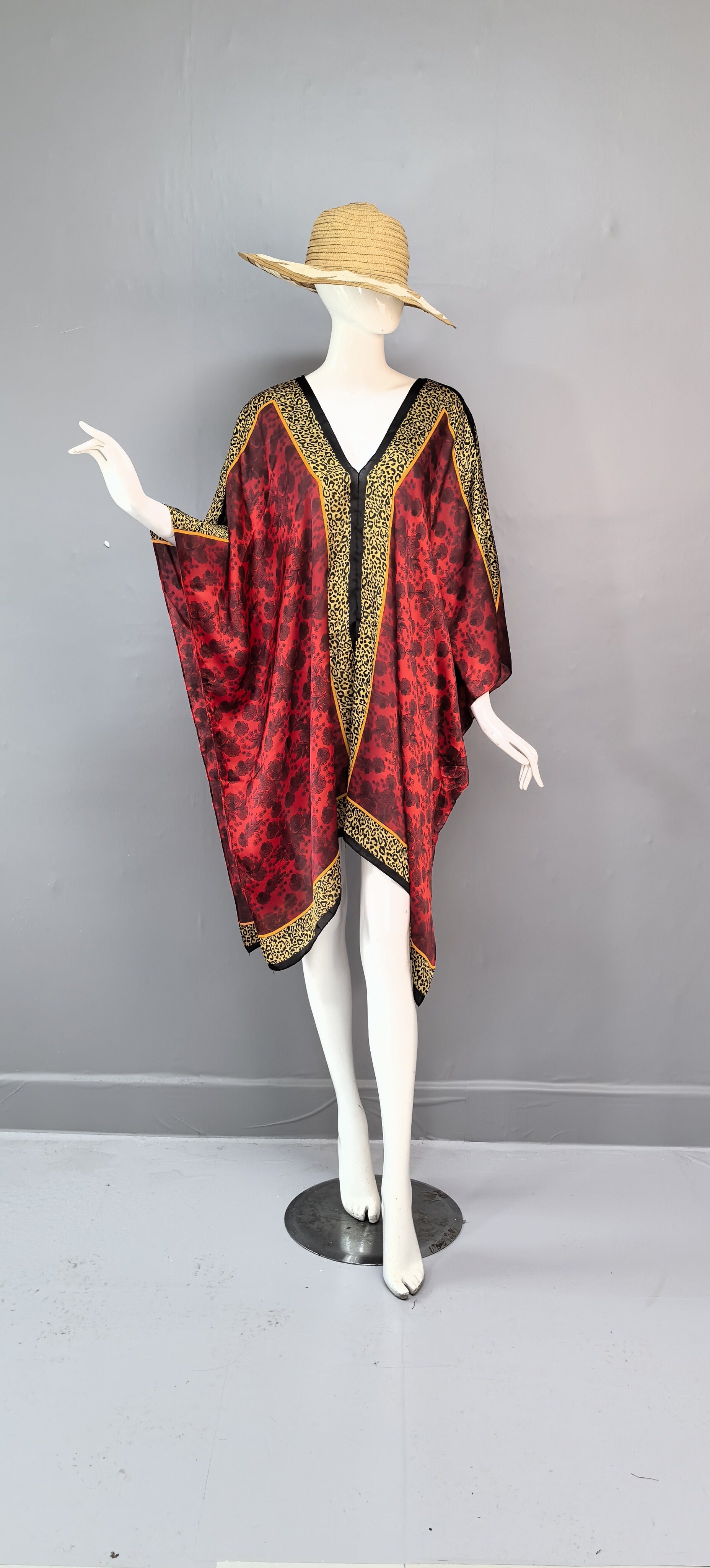 V-neck simulation silk vacation beach dress