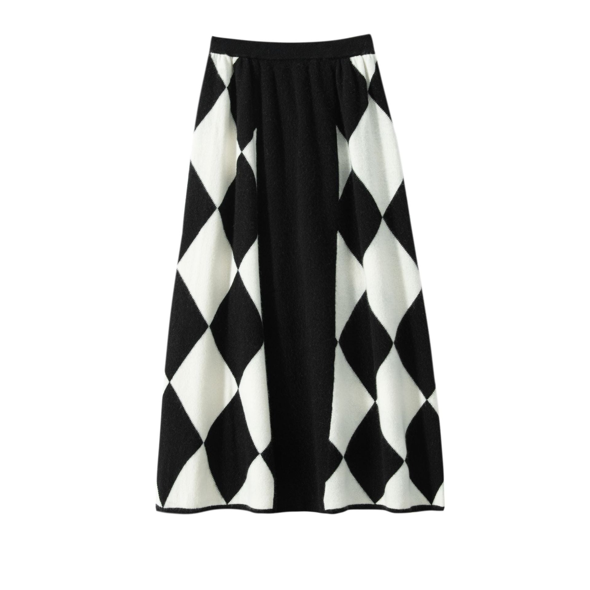 Women's half length skirt with elastic high waisted diamond checkerboard color matching A-line skirt short skirt